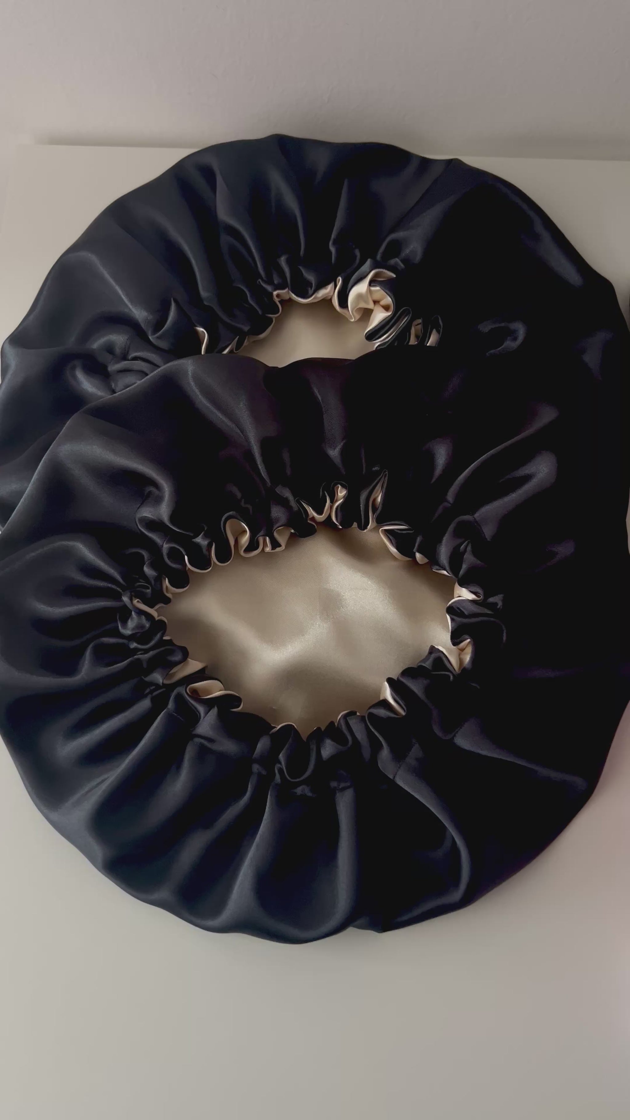 Our Champagne and black Bonnet is the definition of luxury and sophistication. The smooth satin fabric protects your hair while keeping it hydrated and tangle-free.