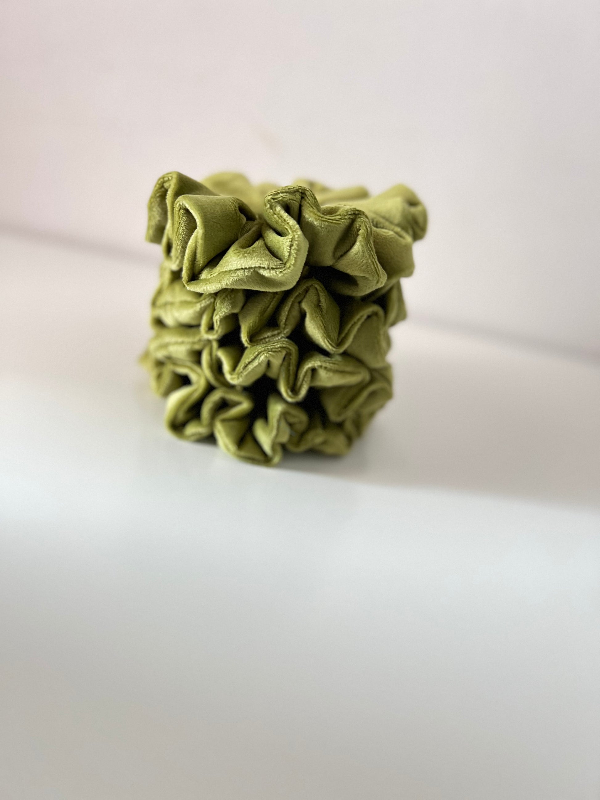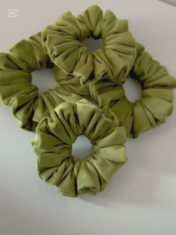 Add a touch of natural elegance to your hairstyle with our Velvet Olive Green Satin Scrunchie, carefully handcrafted to combine beauty, comfort, and hair protection. The soft olive green shade brings a calm, earthy sophistication that complements both casual and elegant looks.